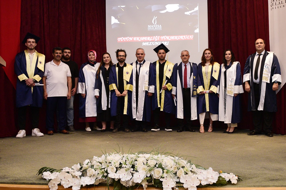 Manisa Celal Bayar Üniversitesi Tütün Eksperliği Yüksekokulunun 47. dönem mezuniyet törenine Akhisar Kaymakamı Mustafa CAN, Hava Meydan Komutanı Albay Hüseyin BORAZAN, MCBÜ Rektör Danışmanı Doç. Dr. Emriye AY, Tütün Eksperliği Yüksekokulu Müdürü Prof. Dr. Halil BABACAN, Akhisar Meslek Yüksekokulu Müdürü Prof. Dr. Kamuran AKTAŞ, Sağlık Hizmetleri Meslek Yüksekokulu Müdürü Prof. Dr. Seren Gülşen GÜLGEN, Akhisar Protokolü, öğretim elemanları, öğrencilerin ve misafirlerin katılımıyla Akhisar yerleşkesinde yapıldı. Yüksekokulumuzda dereceye giren öğrencilere başarı belgelerinin ve mezun öğrencilere temsili diplomalarının verilmesiyle devam eden mezuniyet töreni bahçede kep atma töreniyle sonlandırıldı.